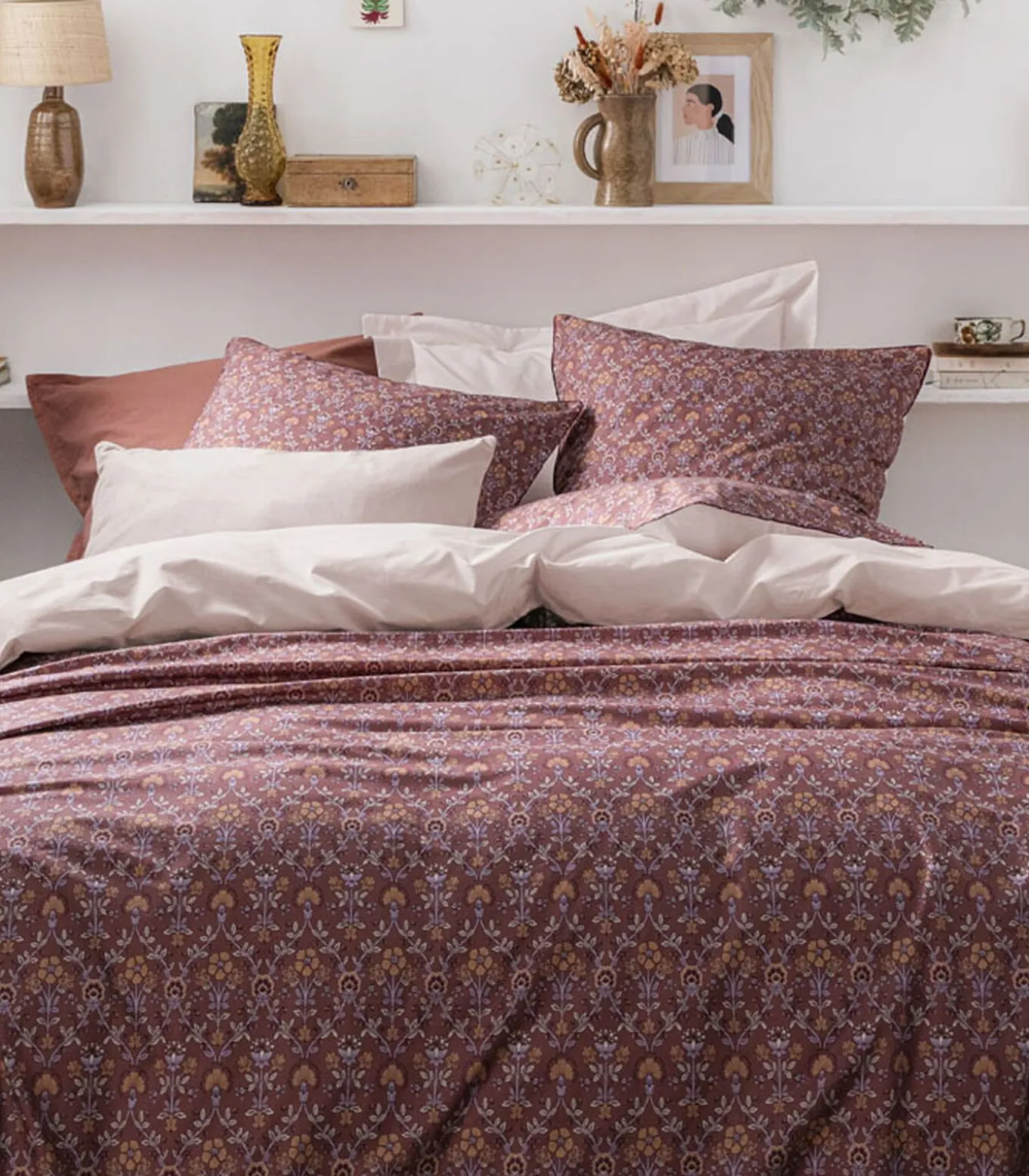 Virginia, vrouwelijk en delicaat, biedt een decor in cottage stijl. Dit warme model is geïnspireerd op de Engelse romantiek en decoratieve kunsten. Geraffineerd bedlinnen, verfraaid met prachtige afwerkingen. Met een lichtroze achterkant om de Virginia print een zacht accent te geven