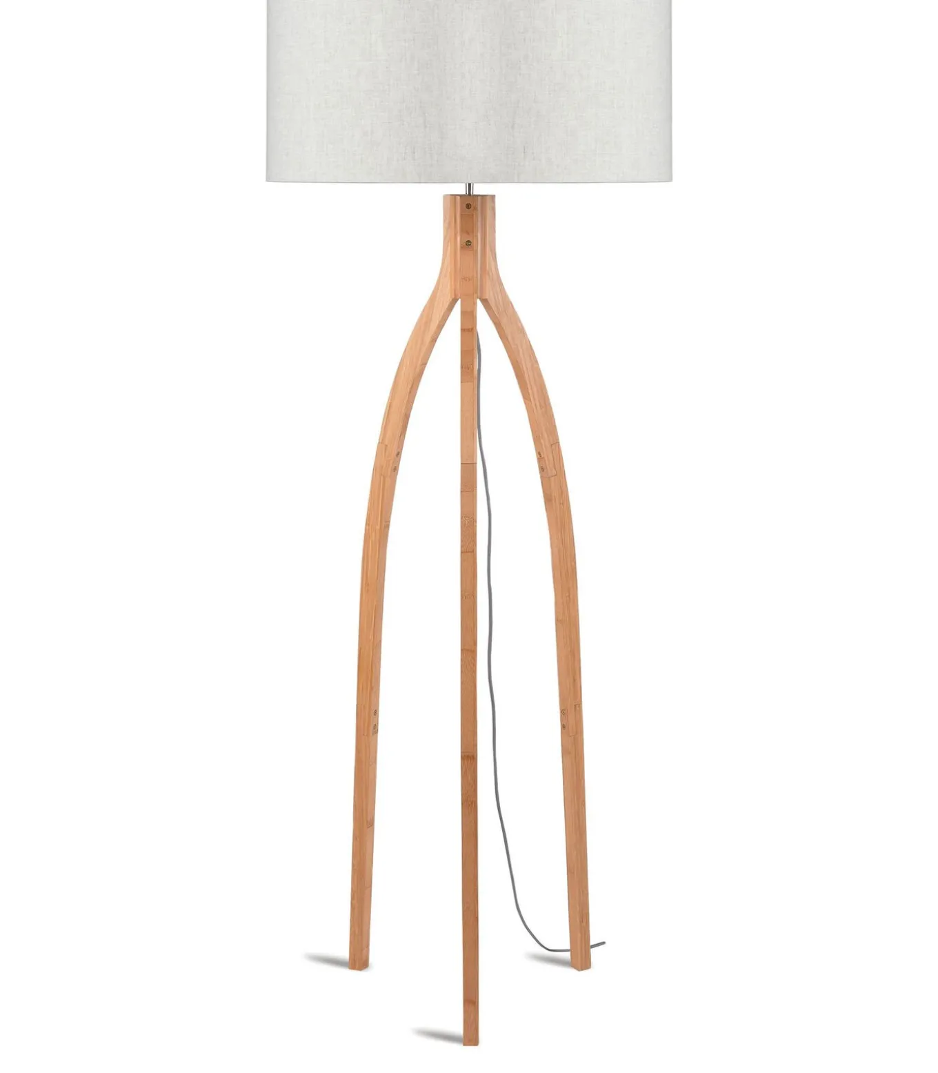 De Annapurna vloerlamp, met een hoogte van 160 cm, heeft drie gebogen bamboe poten, waardoor een stijlvol en minimalistisch ontwerp ontstaat. De linnen lampenkap, met een diameter van 60 cm en een hoogte van 30 cm, vormt een mooi contrast met de natuurlijke bamboekleur en voegt een esthetisch tintje toe aan elke kamer. Deze lamp is perfect voor het verlichten van donkere hoeken in huis.