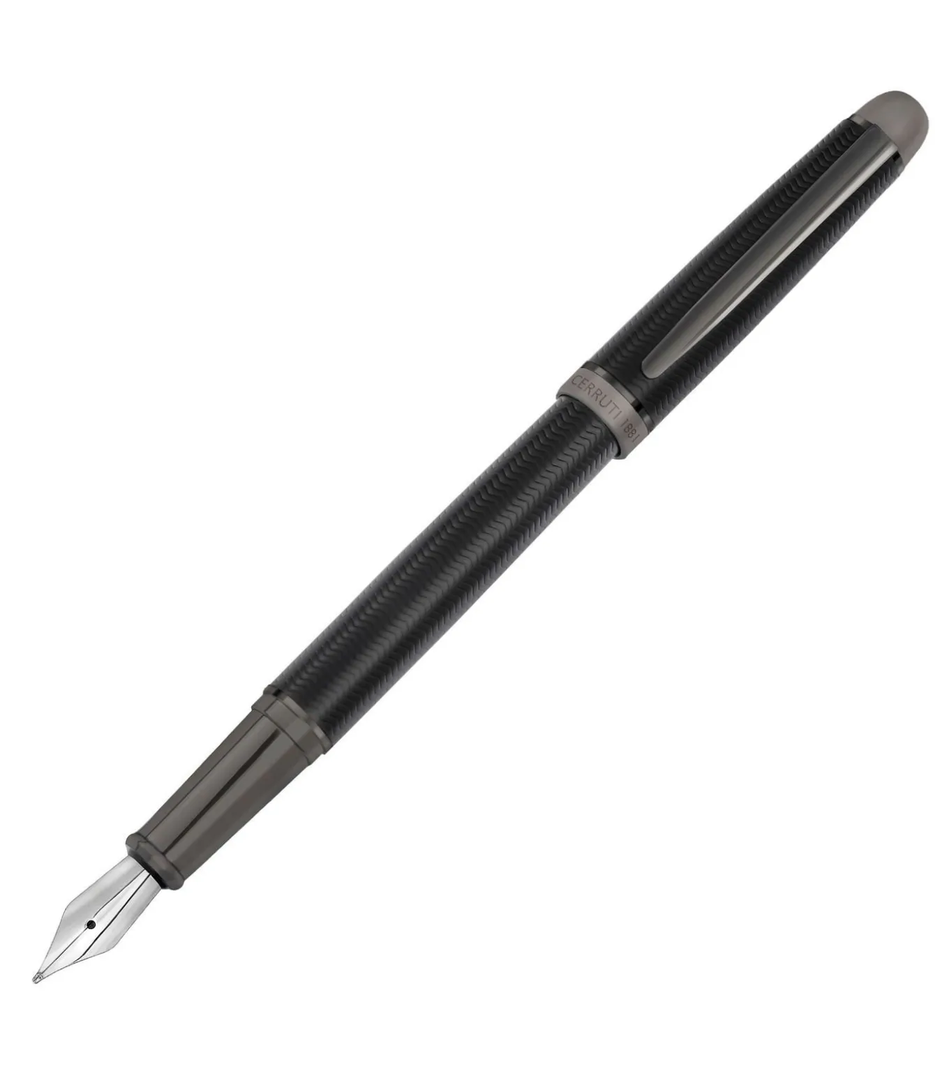 Deze klassieke vulpen, versierd met een chevron gravure geïnspireerd op de gelijknamige tassenlijn, straalt tijdloze verfijning uit. De gunmetal afwerking en contrasterende matte en glanzende middenring versterken het verfijnde ontwerp en bieden een verhoogde schrijfervaring tegen een betaalbare prijs. Dimensions: DIA.12/H.138 mm, Material: Brass,Lacquer,Gun plating