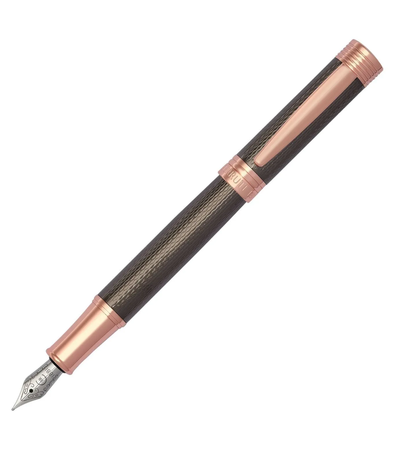Maak kennis met deze nieuwe editie van de CERRUTI 1881 “Zoom” pen – een moderne draai aan een tijdloze favoriet. Met een herwerkte gegraveerde textuur en metalen afwerking, kies uit onze 3 kleuropties : Pistool & Chroom, Pistool & Roségoud, of Chroom & Pistool. Elk verkrijgbaar in balpen, roller en vulpenstijlen, brengt deze diamantgegraveerde editie een extra vleugje luxe aan deze markeerfavoriet. Dimensions: DIA.12/H.136 mm, Material: Brass,Gun plating,Rose Gold plating