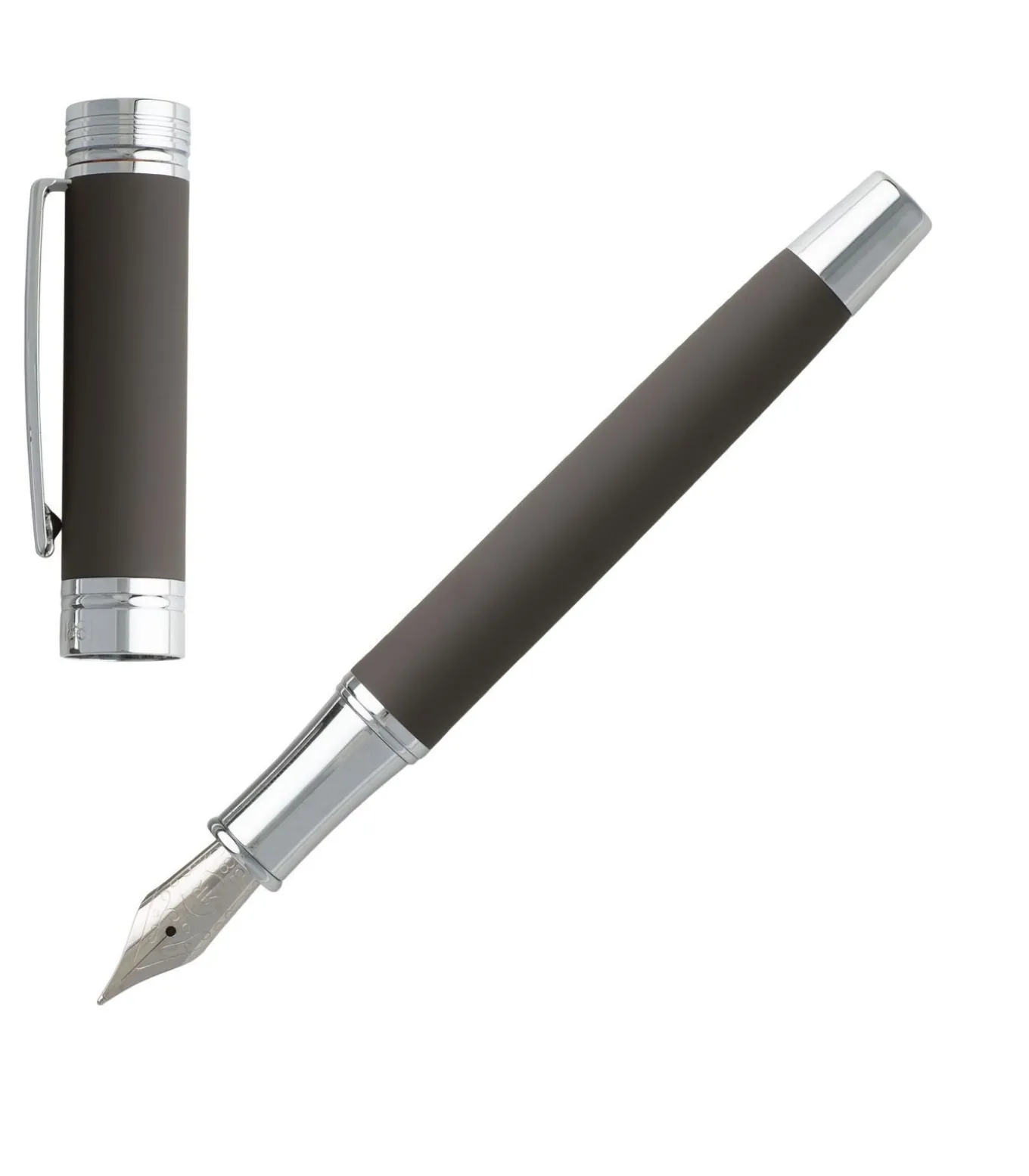 De perectisch uitgebalanceerde, iconische vulpen “Zoom” is dit jaar opnieuw uitgevonden en komt terug met een resoluut eigentijdse taupe soft touch afwerking gecombineerd met glanzende chroom garnituren. Geleverd in een luxe geschenkverpakking. Dimensions: DIA.13.2/H.135 mm, Material: Brass,Rubber, Lacquer,Chrome plating
