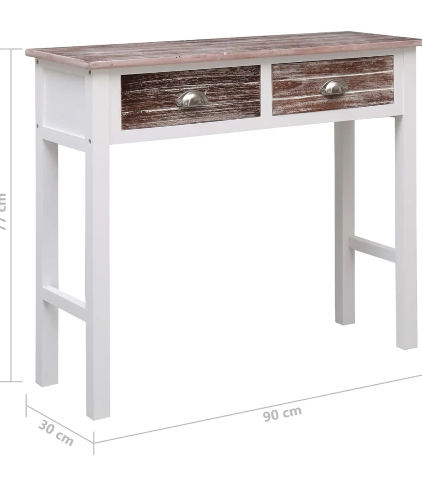 Deze tafel is gemaakt van hoogwaardig paulownia– en populierenhout waardoor hij duurzaam is en gemakkelijk schoon te maken is met een vochtige doek. Hij heeft 2 lades, waardoor er voldoende ruimte is om allerlei kleinere spullen geordend en binnen handbereik te houden.