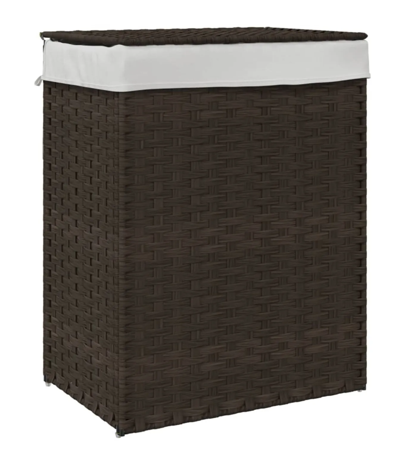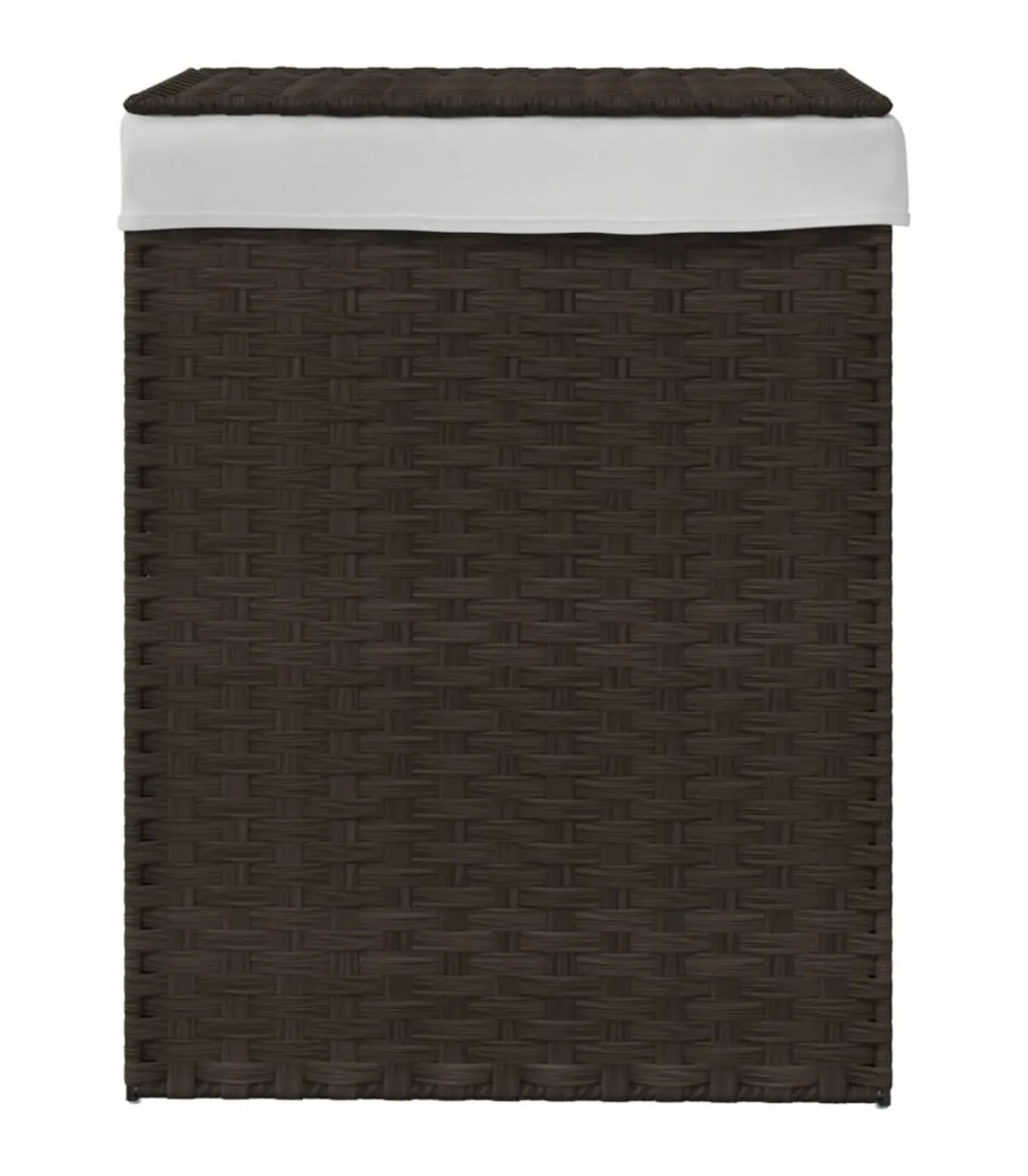 Wasmand met deksel 46x33x60 cm poly rattan donkerbruin
