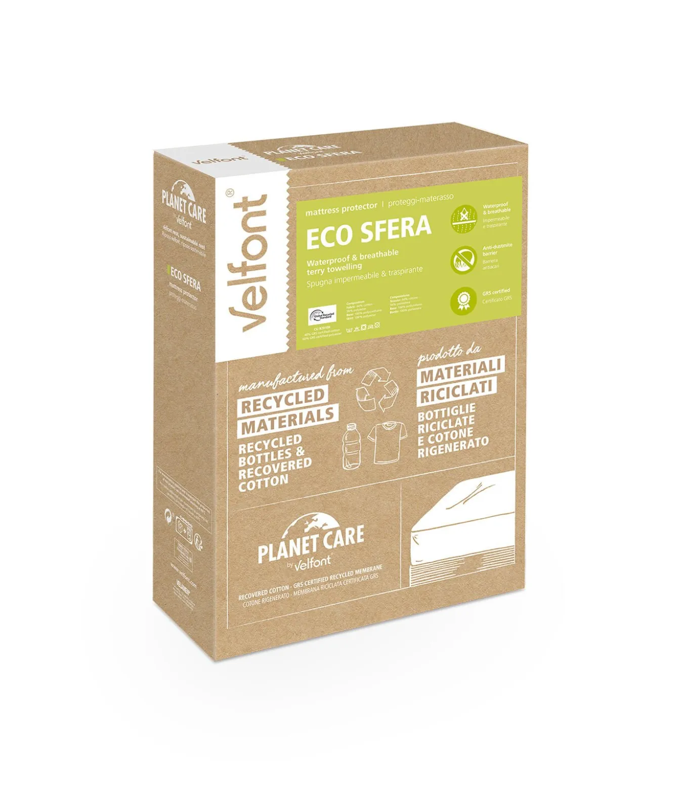 Deze matrasbeschermer is ideaal voor mensen en op zoek zijn naar een zacht aanvoelende en waterdichte bescherming en die begaan zijn met het milieu. De beschermer is immers gemaakt van met GRS–gecertificeerde gerecycleerde materialen. De vezels die gebruikt worden voor de productie zijn afkomstig gerecycleerd katoen en plastic flessen.