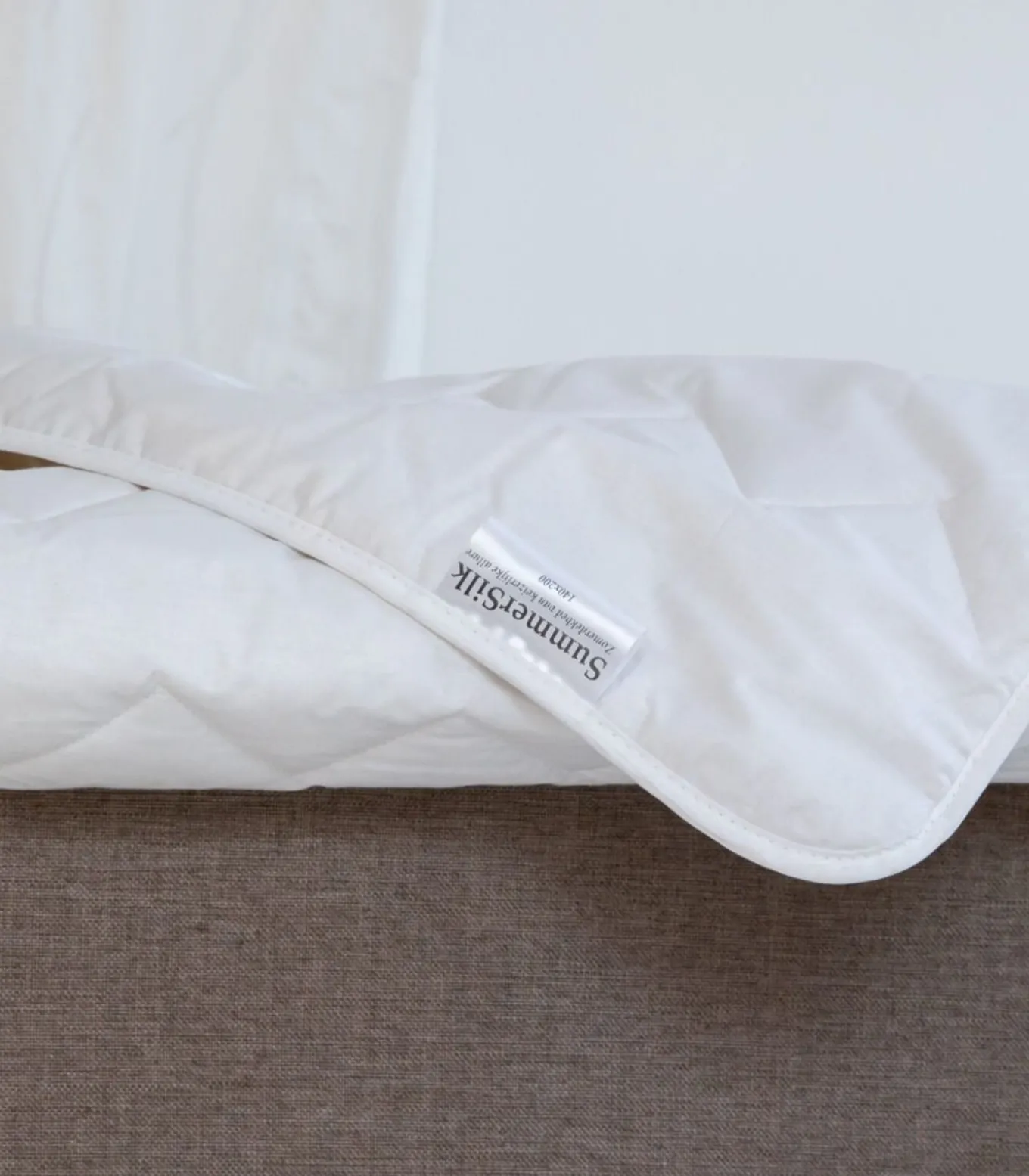 De speciaal ontwikkelde SummerSilk zomerdekbedden zijn flinterdun, heerlijk soepel en zó licht (slechts 200 gram/m²) dat u bijna niets op uw lichaam voelt. De ideale remedie tegen klamme, onrustige zomernachten.