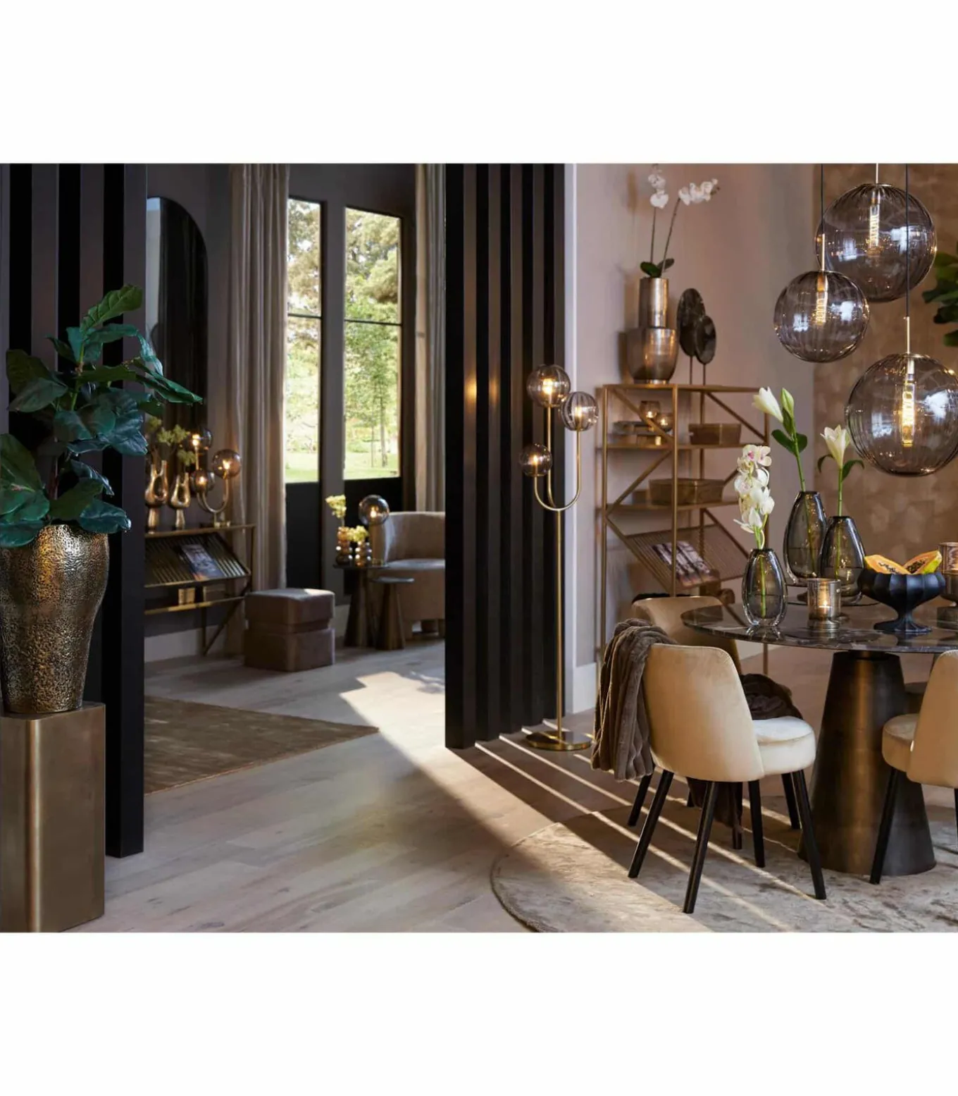 Verfraai met deze glanzende antiek bronzen Alurio plantenstandaard jouw leefruimte. Deze robuuste sokkel van ijzer biedt een podium voor je favoriete planten of decoratieve ornamenten. Met zijn strakke lijnen en moderne uitstraling past de pilaar in ieder interieur. Plaats deze plantenzuil voor binnen in een hoek of maak het een opvallend middelpunt in de woonkamer of slaapkamer. De stevige constructie van de plantenzuil zorgt ervoor dat je planten stabiel staan. Of je nu kiest voor een grote groene plant, een sierlijke bloemenvaas, of een opvallend ornament, deze zuil biedt de perfecte basis.